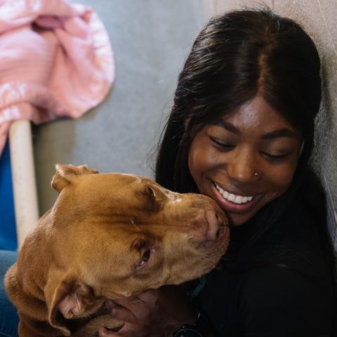 Abigale volunteer with dog square